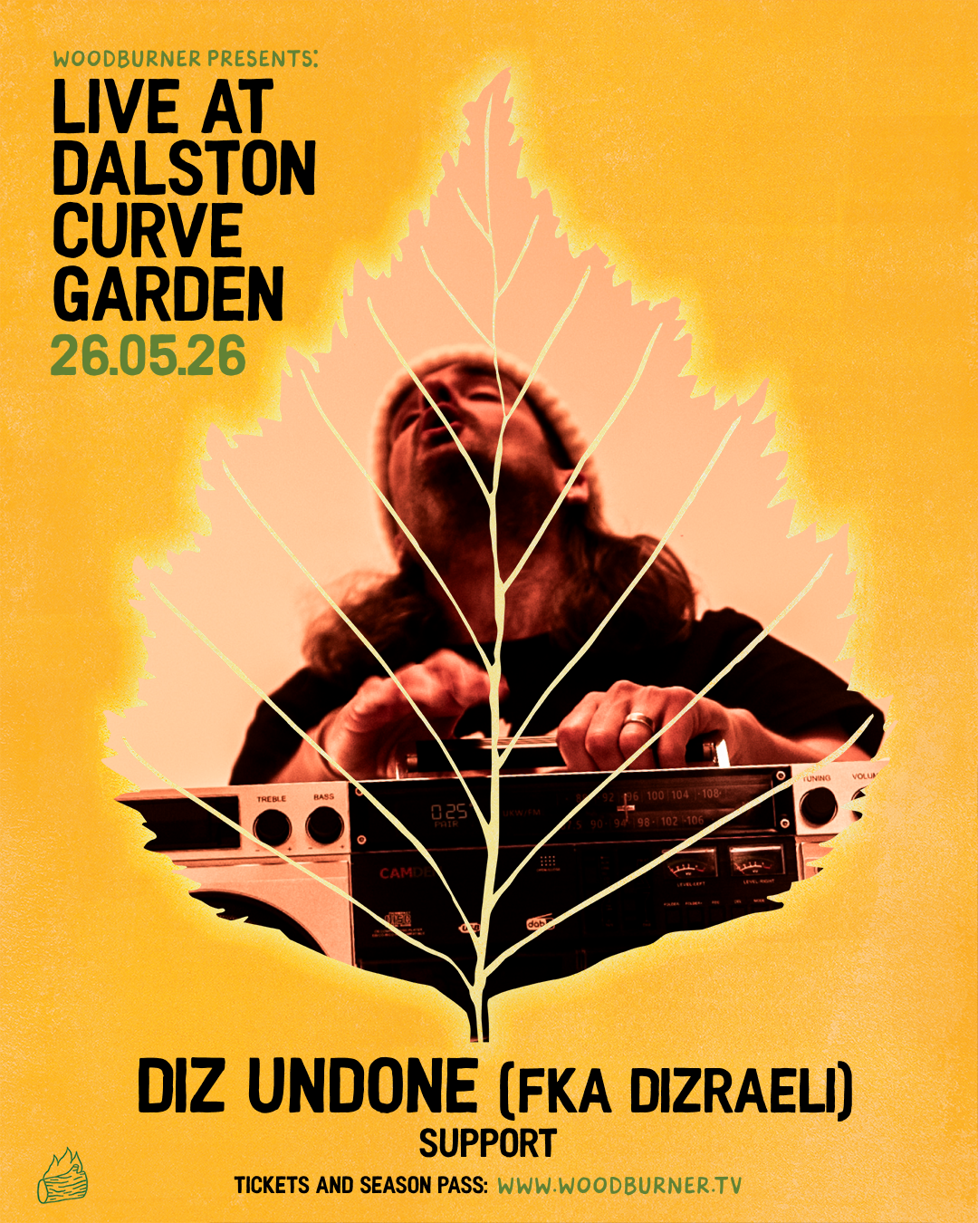 For Woodburner, Diz brings guitar, percussion, beats and songs from across his career, with unswerving humanity and a masterful sense of the absurd.